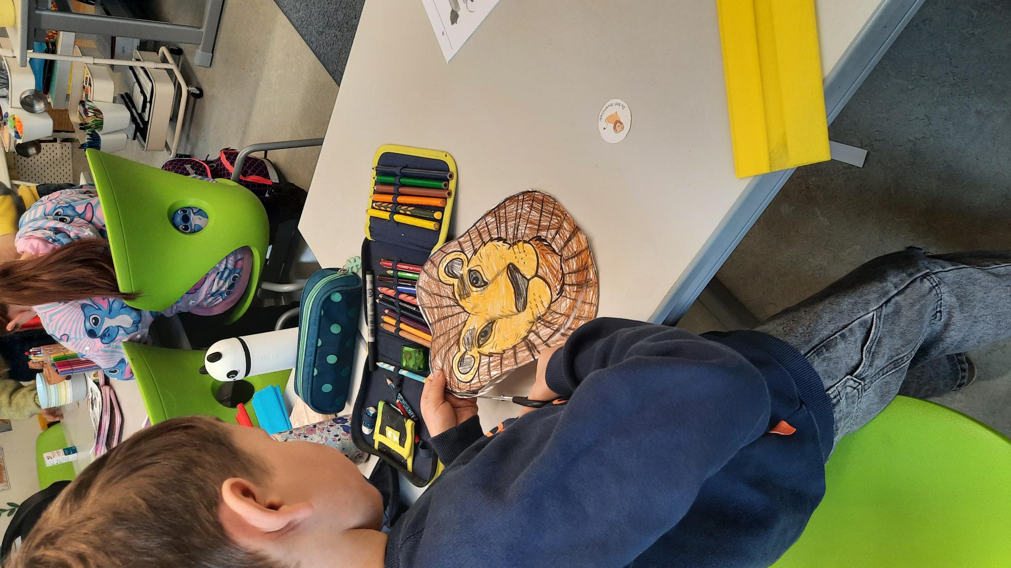 Dort wurden sie in die spannende Welt der Bücher entführt: Manche bastelten kleine Frida Kahlos aus Klopapierrollen, andere fertigten bunte Zeichnungen an, Lesezeichen wurden gestaltet, kleine Botschaften in Walnussschalen verpackt und sogar selbstgebastelte Löwenköpfe fanden ihren Platz. Es gab viele verschiedene Aufgaben: Puzzle wurden gemeinsam gelöst, Bastelprojekte durchgeführt und auch Gruppenarbeiten wurden umgesetzt.